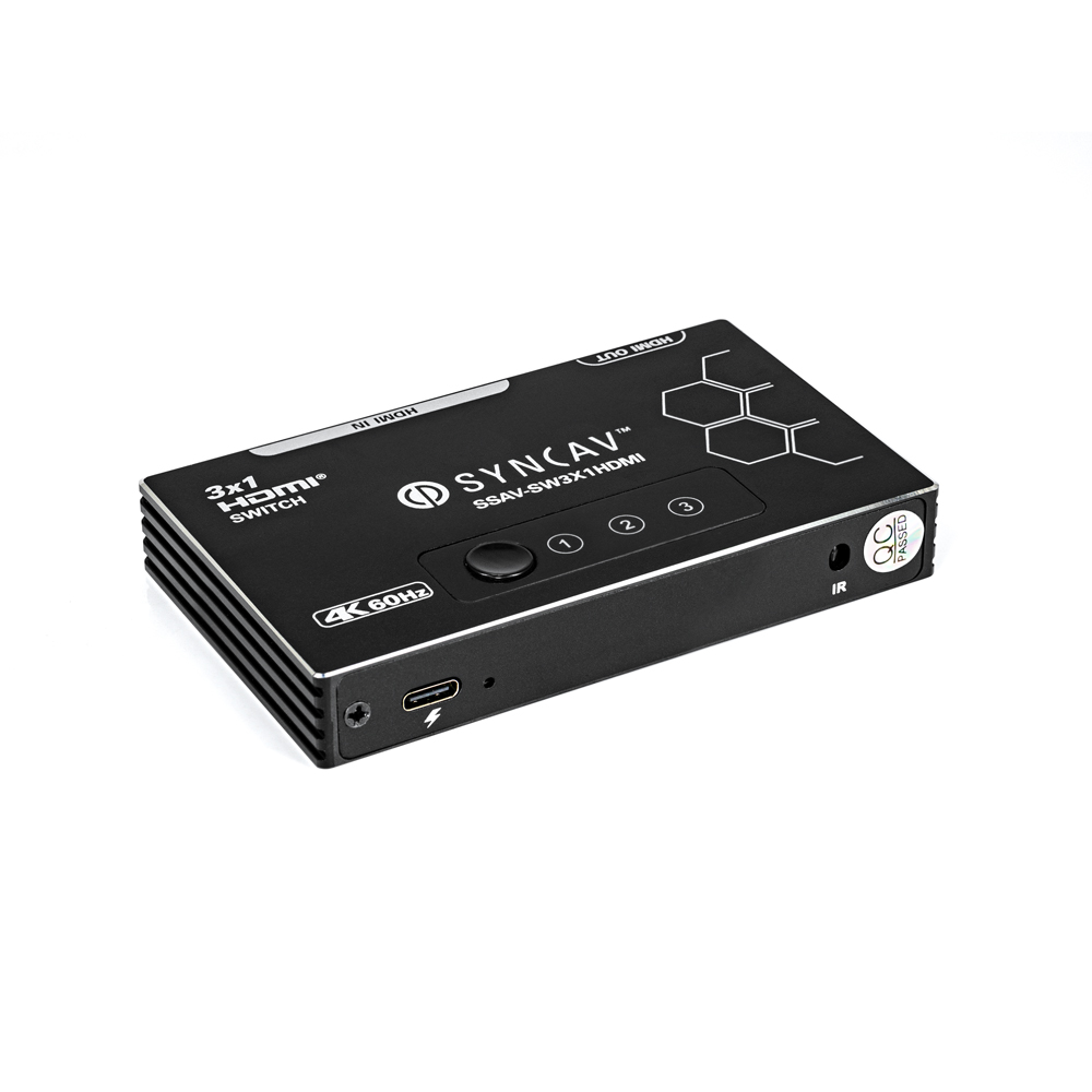 The SyncAv™ 4K HDMI Switcher can switch multiple HDMI Signals to one high-definition display device (such as an HDTV) through the use of a manual push button. This can be used to prevent manually changing cables regularly.